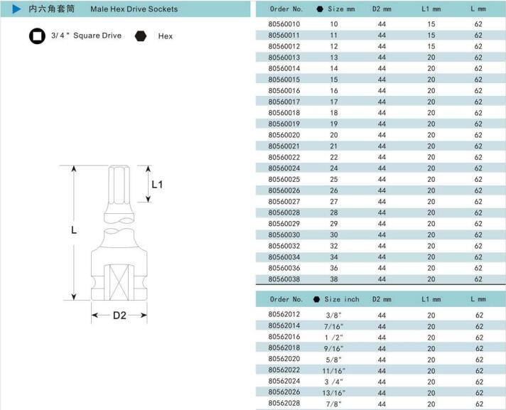 諾麥柯工業級套筒式依照美國標準及德國標準制造的世界一流產品。質量控制系統采用最新的技術與最精確的測量儀器對套筒的每一個測量點進行檢測,以保證每一個套筒的硬度、性能和扭矩都能達到國際標準。