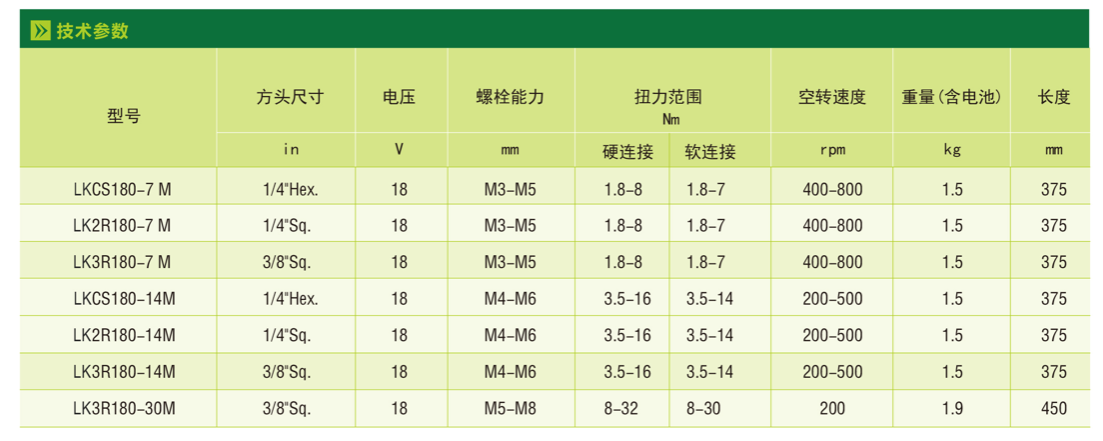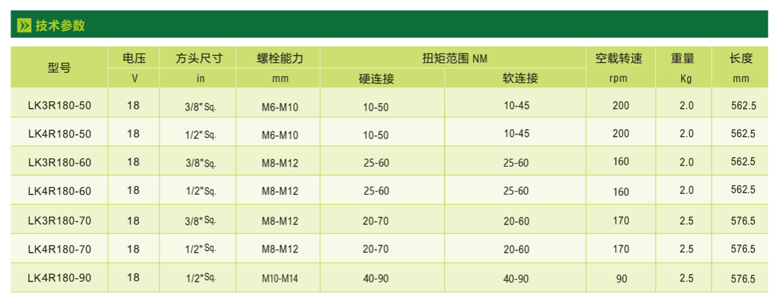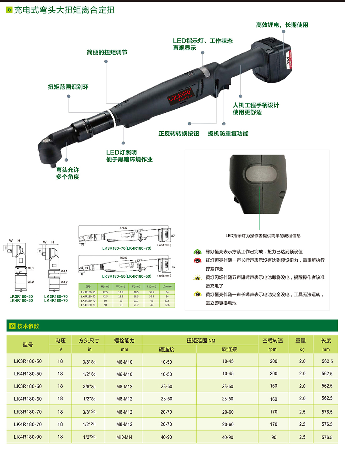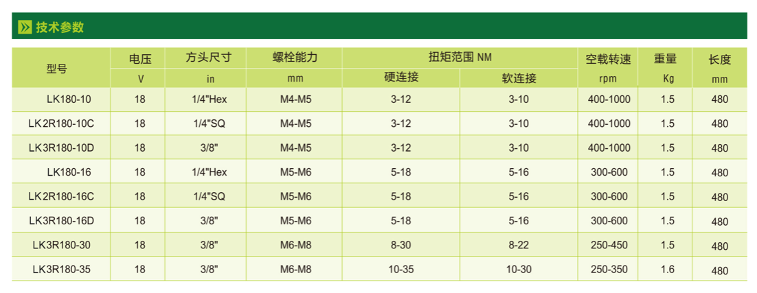高精度定扭:扭力公差+-10%;采用先進(jìn)的鋰電池技術(shù),電池壽命長(zhǎng);LED三色燈報(bào)警,NG/OK提示。扭力范圍:1.8-90Nm;先進(jìn)的無刷馬達(dá),耐久性高,有效降低維護(hù)成本;可自由調(diào)整工具轉(zhuǎn)速,應(yīng)用不同的作業(yè)場(chǎng)景;人機(jī)工程設(shè)計(jì),握感更好,有效降低震動(dòng)及疲勞。
