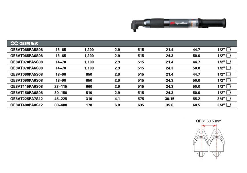 耐用性好,扭矩范圍從13 Nm 至 400 Nm,QE8彎角系列扳手扭矩力大,尺寸小,容易使用。
