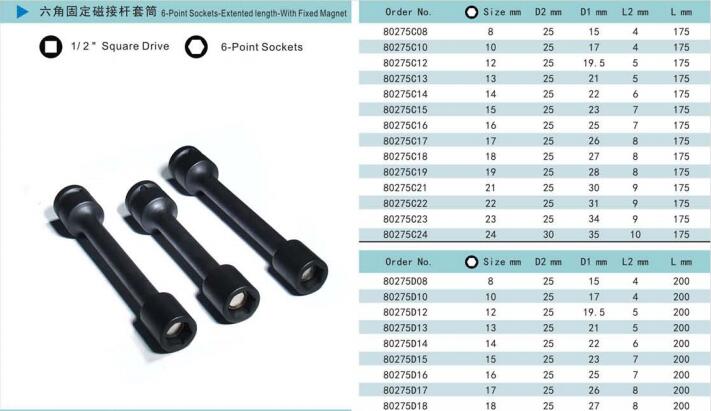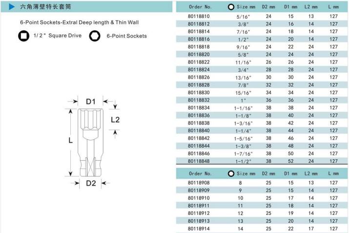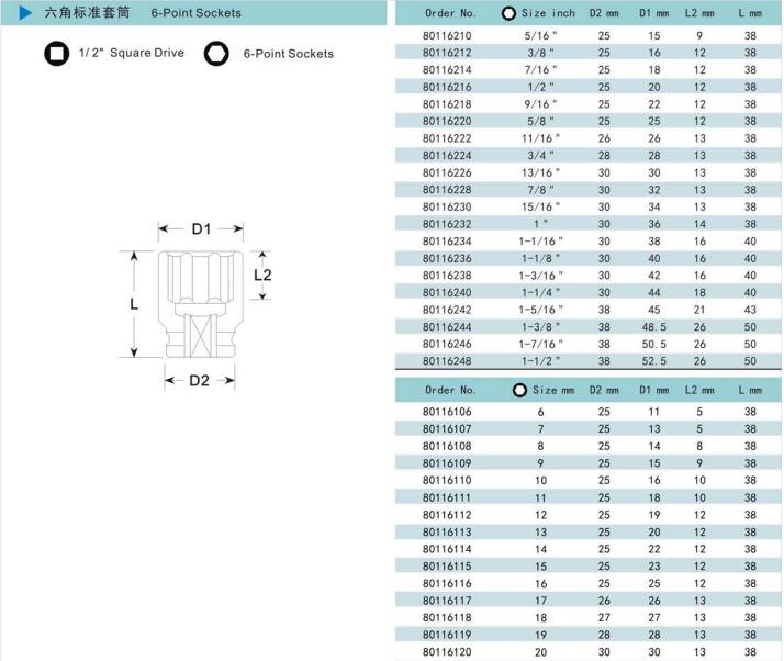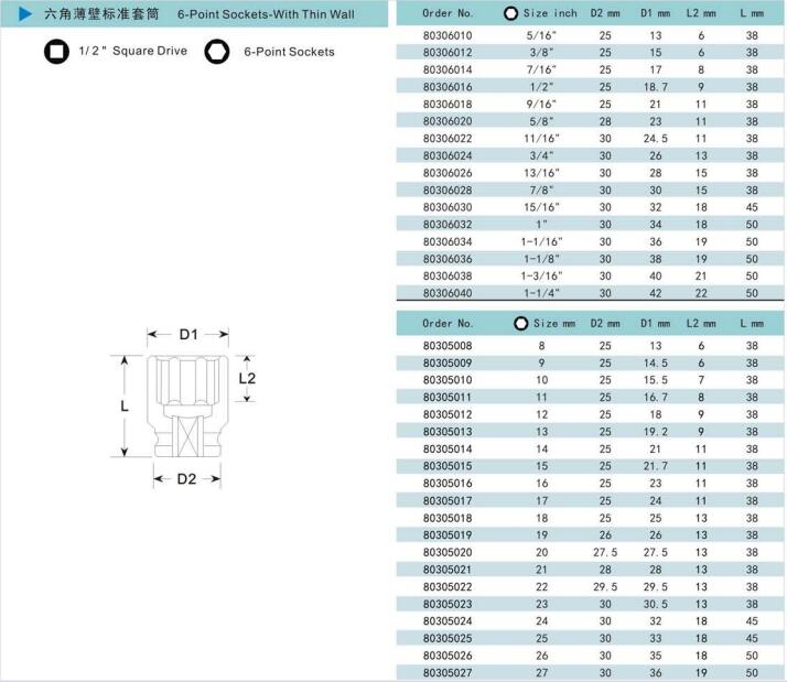 諾麥柯工業(yè)級(jí)套筒式依照美國(guó)標(biāo)準(zhǔn)及德國(guó)標(biāo)準(zhǔn)制造的世界一流產(chǎn)品。質(zhì)量控制系統(tǒng)采用最新的技術(shù)與最精確的測(cè)量?jī)x器對(duì)套筒的每一個(gè)測(cè)量點(diǎn)進(jìn)行檢測(cè),以保證每一個(gè)套筒的硬度、性能和扭矩都能達(dá)到國(guó)際標(biāo)準(zhǔn)。