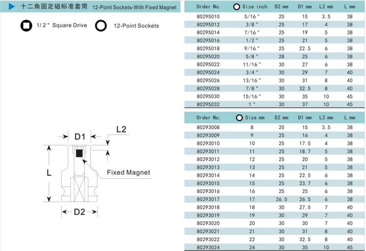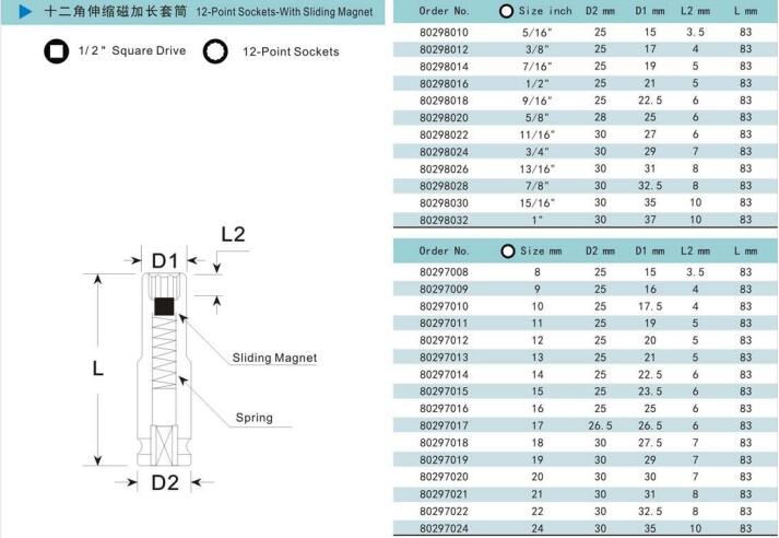諾麥柯工業級套筒式依照美國標準及德國標準制造的世界一流產品。質量控制系統采用最新的技術與最精確的測量儀器對套筒的每一個測量點進行檢測,以保證每一個套筒的硬度、性能和扭矩都能達到國際標準。